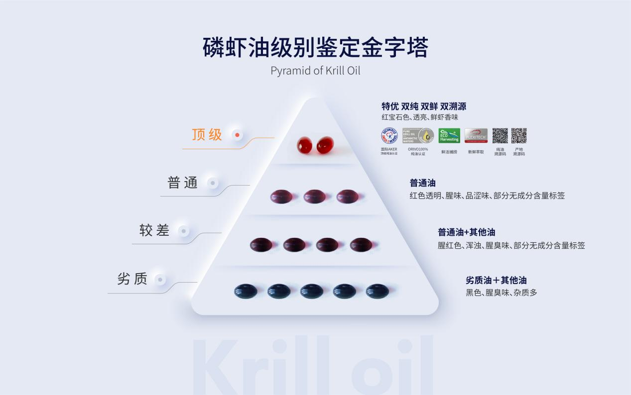 为引导行业自律,保护消费者权益,部分行业龙头企业和品牌已经开始探索建立公益性的产品品质标准体系。以更好的服务用户为出发点,备受用户信赖的国际医学营养品牌VIK创新性发布了“磷虾油级别鉴定金字塔”。目前磷虾油级别鉴定金字塔是行业比较认可的标准,从颜色、成分含量、味道等多方面呢 对磷虾油进行鉴别分级,为消费者正确挑选优质磷虾油提供了一套专业有效的解决方案。